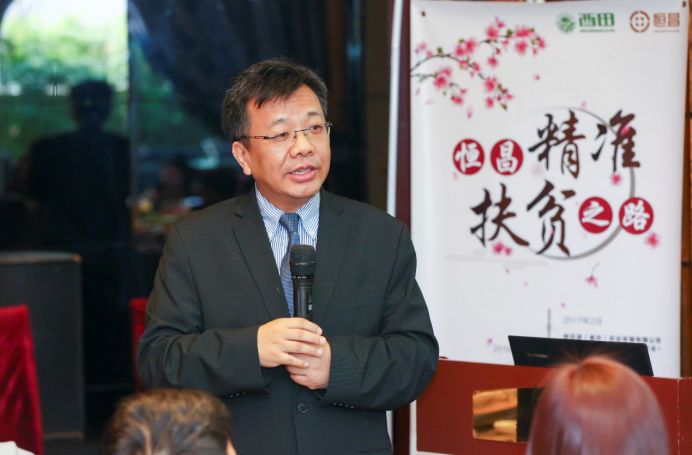 ▲恒昌公司联席总裁刘冰介绍恒昌公司的精准扶贫之路