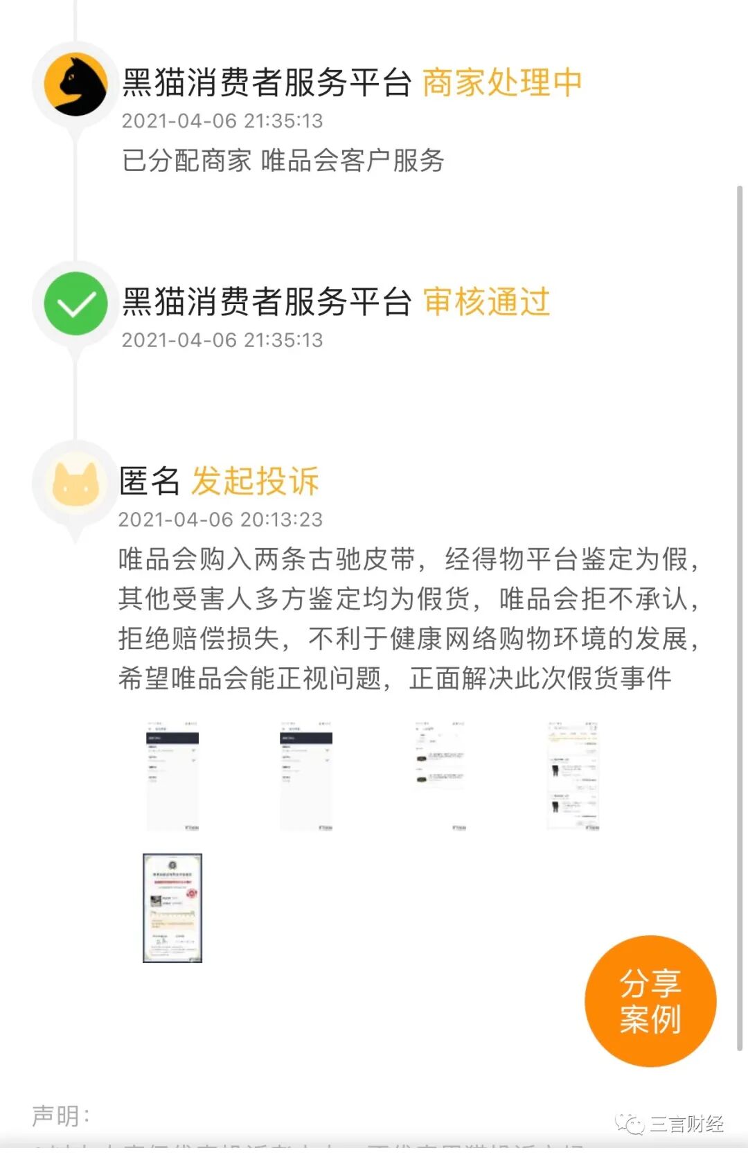 三言财经随机查看了几位不同鉴别师的过往鉴别历史注意到,无论鉴别结果是真还是假,页面仅提供鉴别结果和用户上传的商品图片。